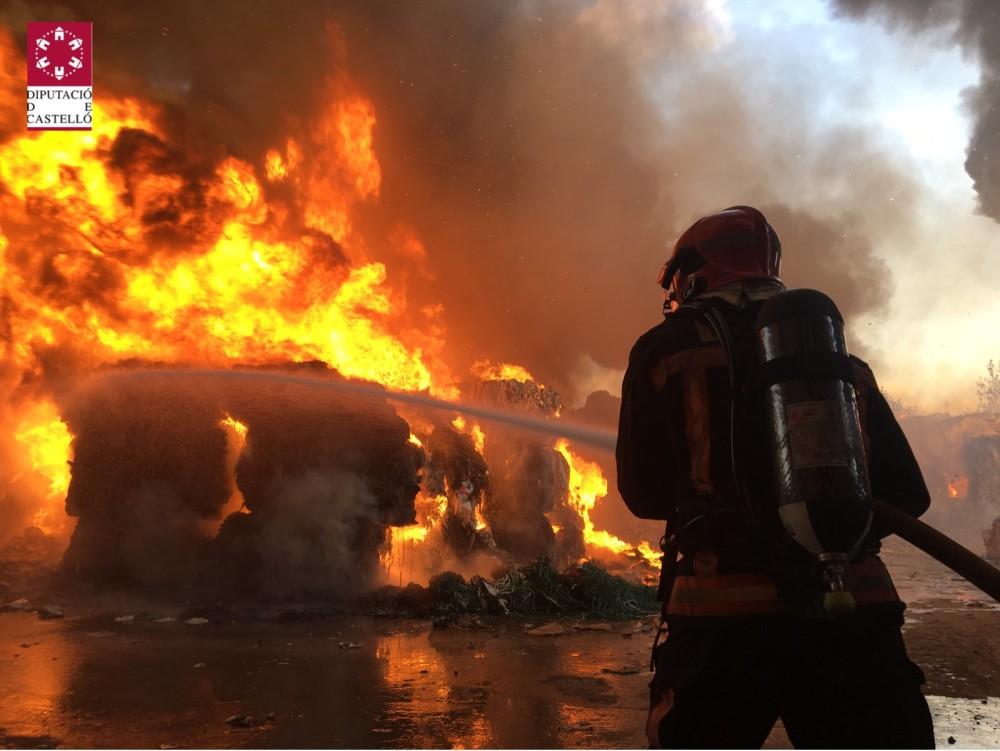 Virulento Incendio en una empresa de reciclaje del polígono industrial del Colador en Onda