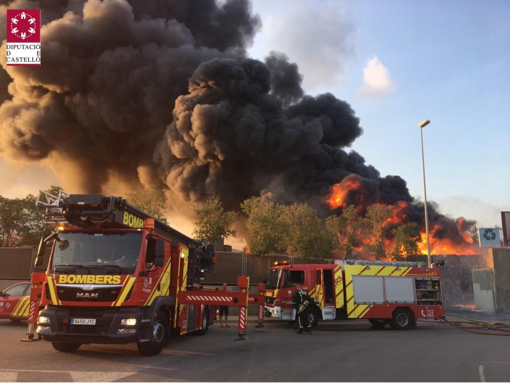 Poco después de las 18.00 horas se recibía aviso de un incendio en el término municipal de Onda. Efectivos del Consorcio Provincial de Bomberos se han desplazado hasta el lugar donde las llamas están afectando a una empresa de reciclaje situada en el polígono industrial del Colador.