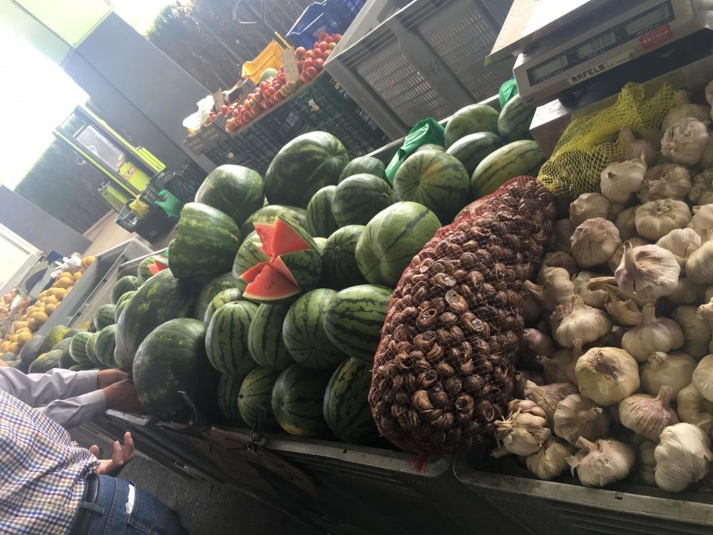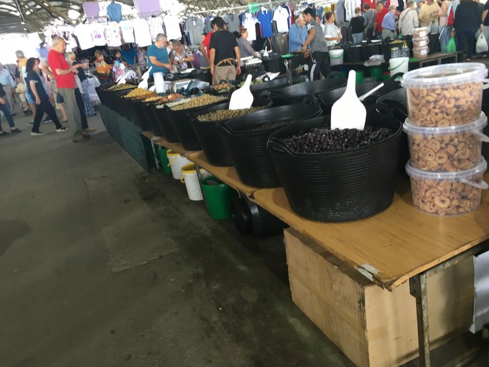 Y entre los puestos de verduras una oferta muy particular, la especialidad que llama la atención de los turistas: las aceitunas. Las hay de todo tipo, de manzanilla, trencats, picantes, grandes y pequeñas.