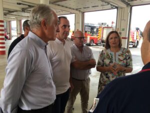 El diputado provincial de Bomberos, Abel Ibáñez, ha visitado esta mañana las instalaciones del parque de bomberos profesionales del Baix Maestrat, ubicado en la localidad de Benicarló. Ibáñez, acompañado por la alcaldesa de la localidad y también diputada provincial, Xaro Miralles, ha conocido de primera mano el trabajo que realiza un parque que presta asistencia a un total de 14 municipios: Alcalà de Xivert, Benicarló, Càlig, Canet lo Roig, Cervera del Maestre, Xert, La Jana, Peñíscola, Rosell, Sant Jordi, San Rafael del Río, Sata Magdalena de Pulpis, Traiguera y Vinaròs.