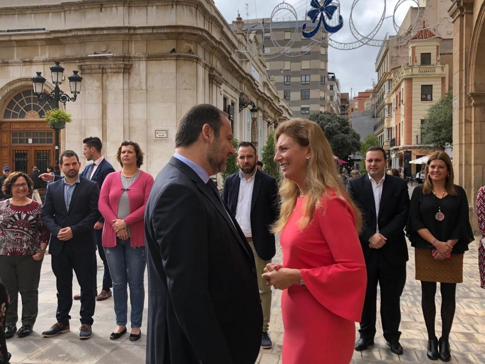 A las 11 de esta mañana llegaba el Ministro de Fomento a la plaza Mayor de la capital de La Plana donde era recibido por la alcaldesa de la ciudad, Amparo Marco así como gran parte de la Corporación Municipal y miembros de otras agrupaciones políticas.