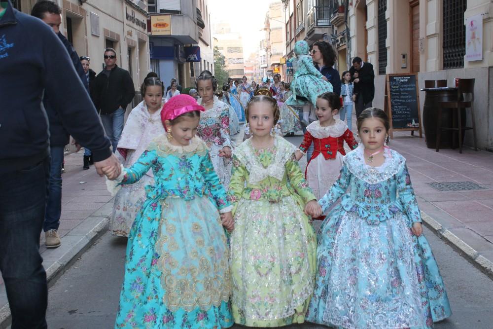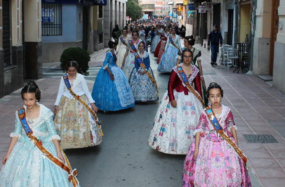 desfilada en el qual es converteix cada any la Visita Oficial que es realitza a la totalitat dels monuments plantats dimecres passat a la ciutat. Totes i cadascuna de les 19 comissions falleres de la ciutat s'han donat cita a la Llar Fallera per iniciar un llarg recorregut que els ha portat inicialment al monument del Barri Sant Blai, per més tard visitar el de la Mercè i continuar fins a completar tota la visita que ha finalitzat a la Plaça Major, just enfront del tapís on el diumenge tindrà lloc l'Ofrena. Així, les representants falleres de totes les comissions de Borriana han lluït les millors gales en una visita oficial que, a la vegada, es converteix en festiva amb la inclusió de xarangues entre cadascuna de les Falles.
