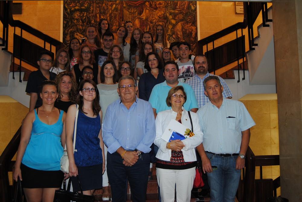 El primer tinent d'alcalde de Vila-real, Pasqual Batalla, i la regidora d'Educació, Rosario Royo, entre d'altres membres de la corporació municipal, han rebut este matí a la sala de plens de l'Ajuntament un grup d'alumnes de la República Txeca que participen en un programa d'intercanvi educatiu amb l'institut local Professor Broch i Llop.