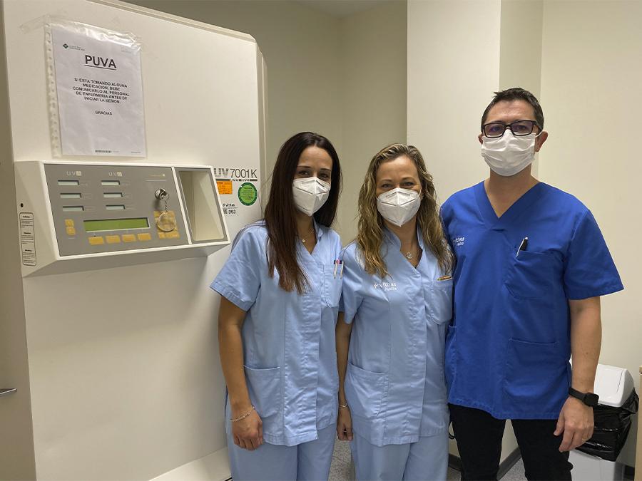 En Vithas Valencia Consuelo, además de disponer de cabina, existen otras modalidades de tratamiento más focalizadas, que permiten su administración sobre áreas localizadas de la superficie corporal como manos y pies. El número total de sesiones a la semana y la duración del tratamiento depende del tipo de piel (fototipo) y de la respuesta de su enfermedad al tratamiento.