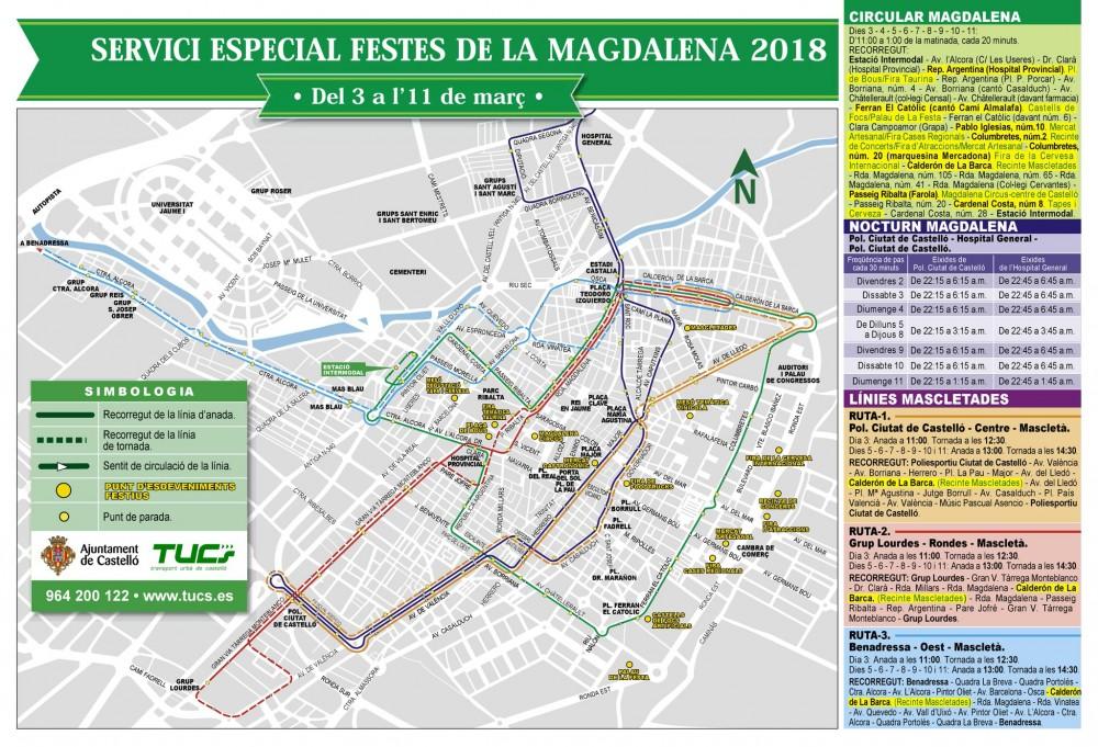 Autobuses: De las 7.30 a las 17.30 horas funcionará un servicio ininterrumpido de autobuses que conectará la Farola con la explanada situada junto a la N-340. El dispositivo funcionará durante 10 horas de manera ininterrumpida para subir y bajar de la Magdalena, con salidas de los vehículos a medida que se vayan llenando. El precio es de 1,5 euros y se podrá adquirir en Huerto Sogueros.