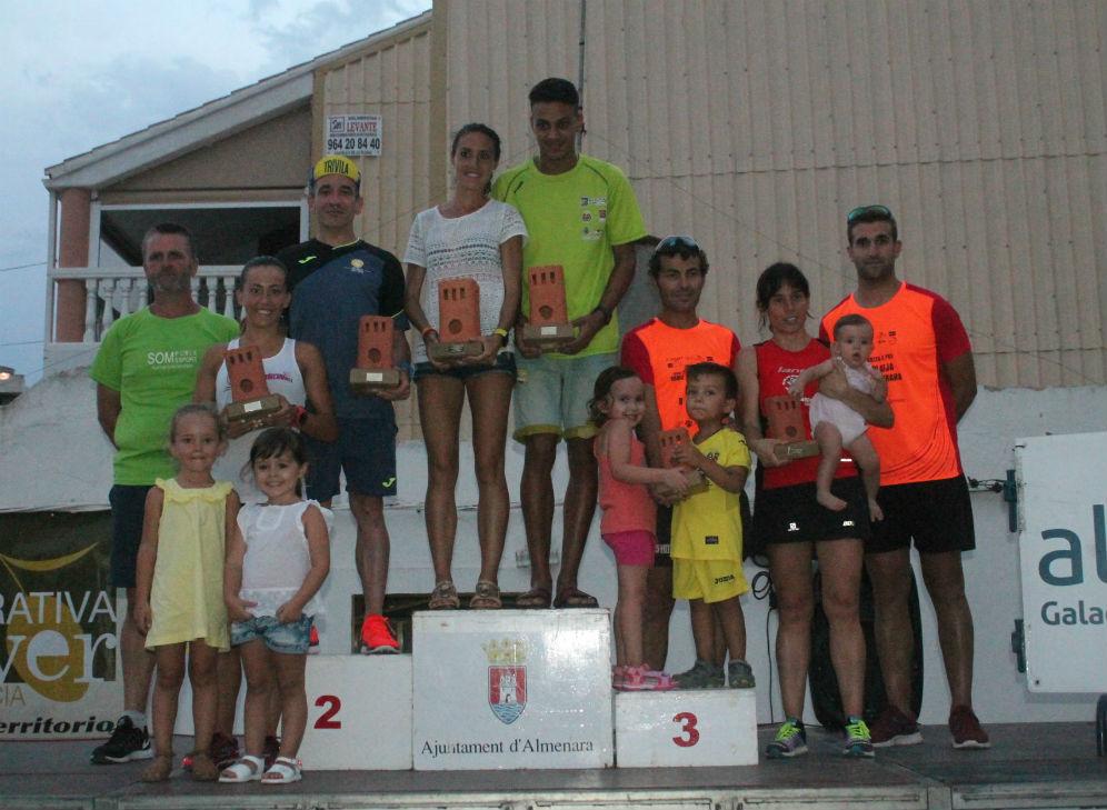 Por lo que respecta a la categoría cadete, la victoria ha sido para Lucí­a Parra (Team 3FDC) y Óscar Bou (independiente), en sénior han ganado Emily Desprez y Álvaro Ginés (Redolat Team). A continuación, para la categoría de veteranas A venció Mar Cebriá y en veteranas B Marí­a Alonso (C.A. Noulas). En veteranos A ganó Nicolás Salido y en veteranos B, Pedro García. La victoria en categoría local fue para Carlos Olmedo y Teresa Torres. Se puede señalar que los trofeos no eran acumulativos, por lo que la lista de premiados corrí­a si alguno entraba en una categoría superior.