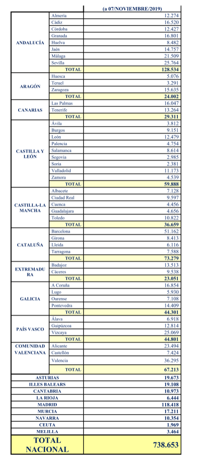 De todos los votos por correo admitidos, la Sociedad Estatal tiene ya en custodia, en las oficinas postales de destino, 738.653 sobres con los votos depositados por los electores, preparados para su entrega el próximo domingo, 10 de noviembre, en las 59.555 mesas distribuidas en los 22.862 locales electorales del territorio estatal.