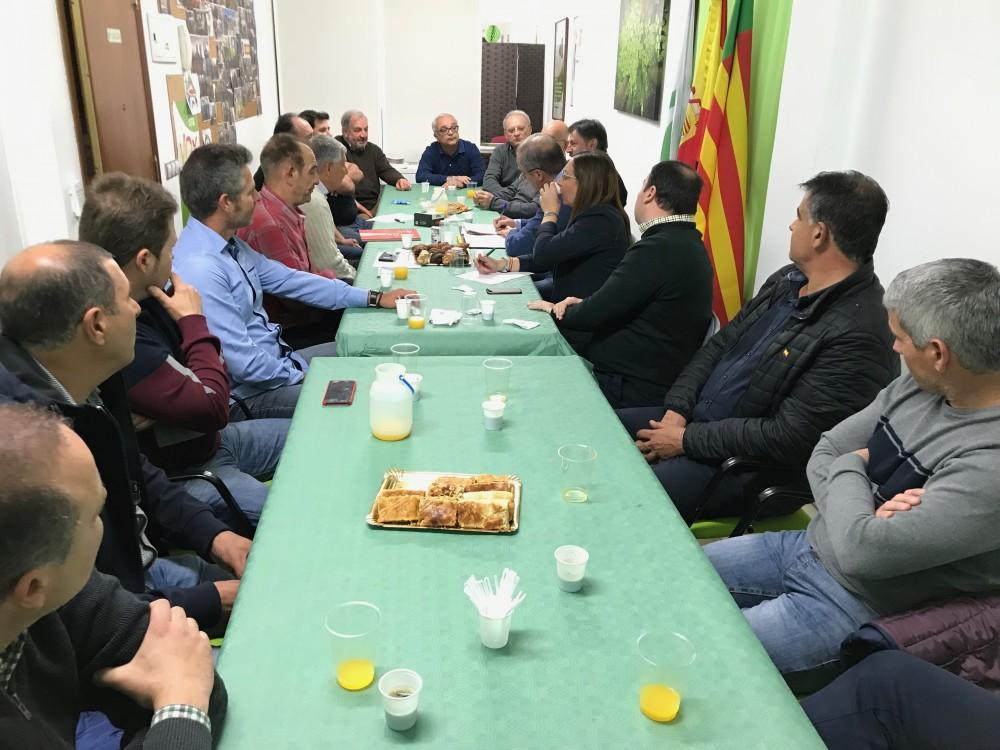 El candidato al Congreso, Alberto Asarta, y la candidata a las Cortes, Llanos Massó, se reúnen con los principales representantes del sector citrícola de la provincia de Castellón en la sede del partido