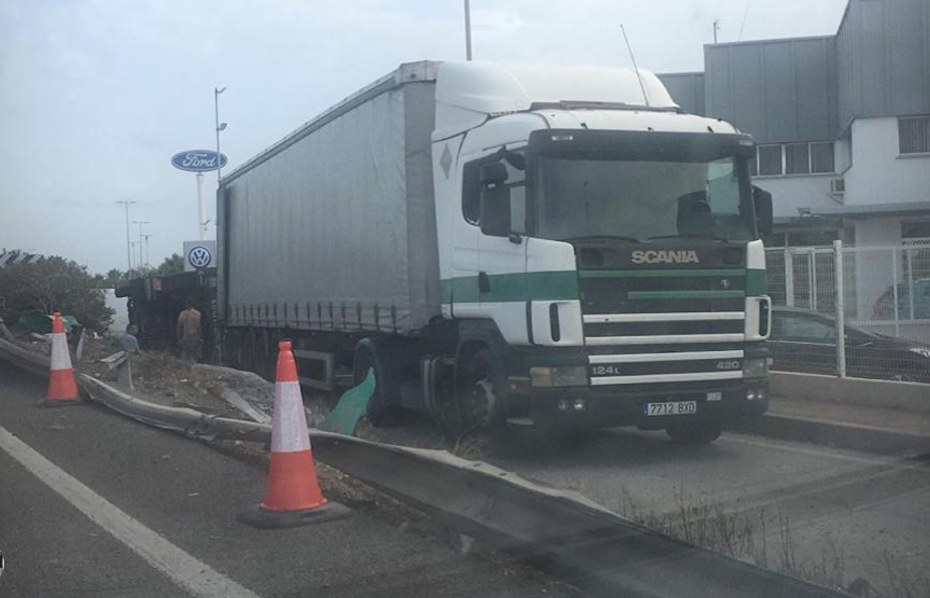 Un camión ha volcado esta tarde en Vila-real, alrededor de las 18.30, en la entrada norte de la ciudad, en las inmediaciones del concesionario de coches Seat. La Guardia Civil se ha personado en el lugar de los hechos y ha cerrado el tráfico el acceso a la ciudad por ese tramo, donde está el polígono la Rosaleda, por lo que se han generado algunas retenciones, sin ninguna gravedad, y ha desviado el tráfico, por lo que los vehículos han tenido que continuar por la N-340, que se encuentra sin ningún problema.