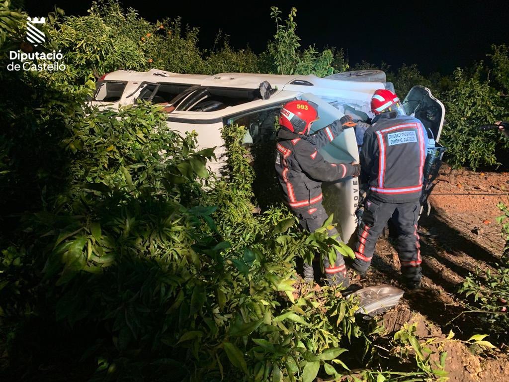 El segundo incidente ocurría horas más tarde, ya entrada la noche, también en el término municipal de Onda. En este caso, la alerta recibida notificaba que un vehículo se había salido de la vía y había volcado. De nuevo se temió que el conductor pudiera haber quedado atrapado dentro del vehículo, aunque por suerte, no fue así.