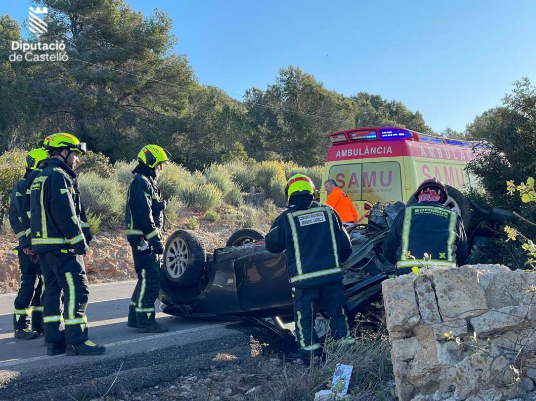 Efectivos del Consorcio Provincial de Bomberos de Castellón han intervenido este domingo en un accidente de tráfico en el término municipal de Alcalà de Xivert, donde un vehículo ha quedado volcado.