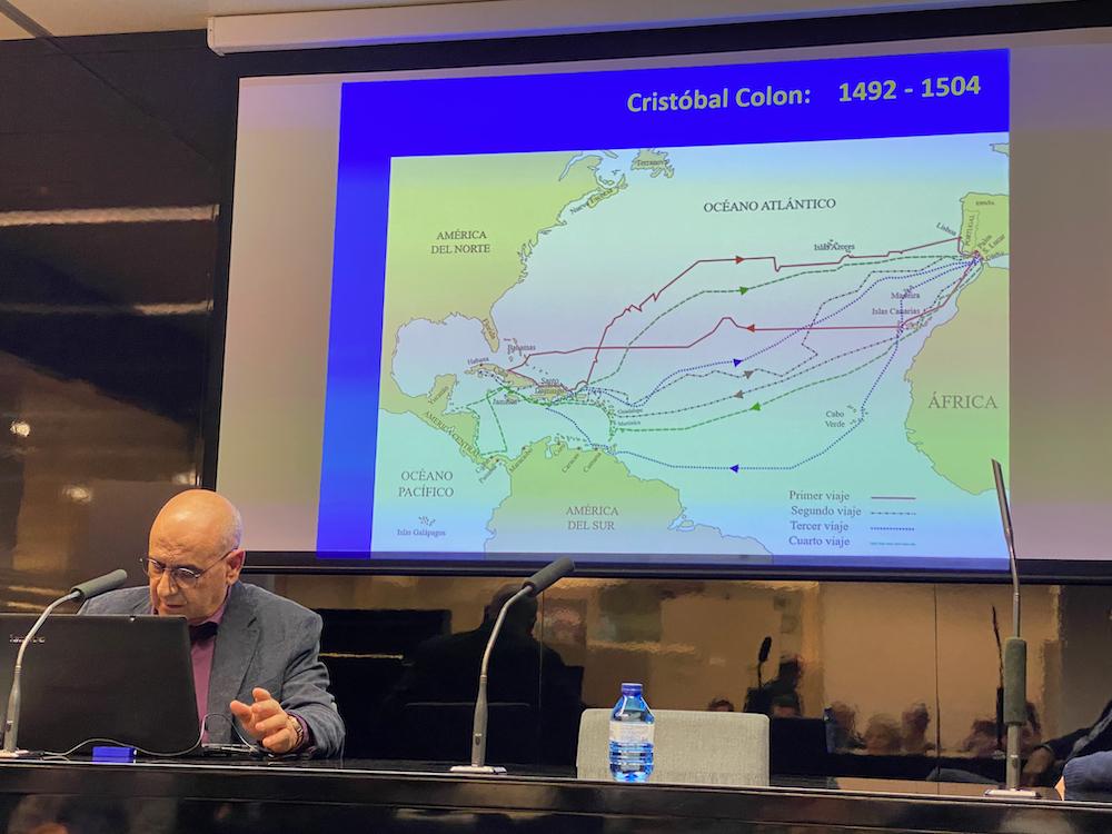 El biólogo y experto, Juan Ors Martínez, ha impartido esta tarde, en El Corte Inglés, la primera de las conferencias organizadas para complementar la exposición con la que se conmemora la primera vuelta al mundo, realizada por Magallanes y Elcano.
