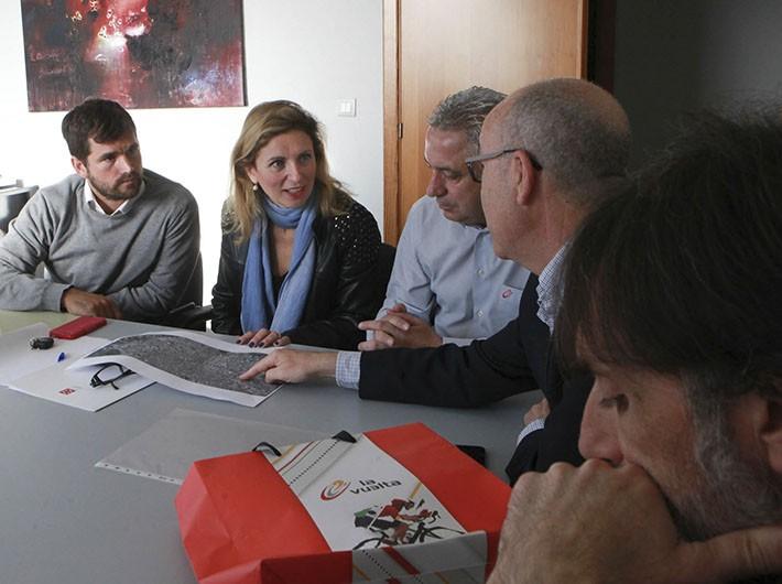 La alcaldesa de Castellón, Amparo Marco, y el concejal de Deportes, Enric Porcar, han mantenido esta mañana una reunión con los responsables de la Vuelta Ciclista a España para tratar diferentes temas de organización que afectan a la etapa que se disputará el próximo mes de septiembre en nuestra ciudad. Por parte de la Vuelta Ciclista han participado en la reunión Pedro Lezaun, Marino Oscoz, Kerman Zunzarren y el exciclista profesional castellonense Kiko Garcia, olímpico en Barcelona 92. Además, han asistido al encuentro técnicos del Patronato de Deportes, miembros de la Policía Local y representantes de la Diputación de Castellón.