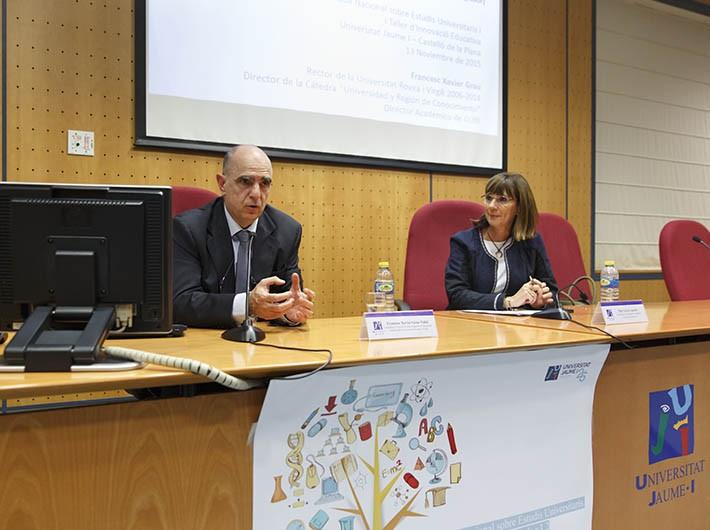 El ex rector de la Universitat Rovira i Virgili y catedrático de Mecánica de Fluidos Francesc Xavier Grau Vidal ha sido el encargado de cerrar la 'V Jornada Nacional sobre Estudios Universitarios y el I Workshop de Innovación Educativa' celebrada en la Universitat Jaume I los días 12 y 13 de noviembre. En su conferencia de clausura sobre universidades emprendedoras, Grau Vidal ha afirmado que "la universidad es la clave de la sostenibilidad del desarrollo de nuestras sociedades a nivel local y global ya que el desarrollo se basa en el conocimiento" y ha instado a modificar el sistema de gobernanza de las mismas con el fin de que las universidades puedan asumir esta responsabilidad a partir de una autonomía suficiente que parta de la base de que "la universidad es de la sociedad".