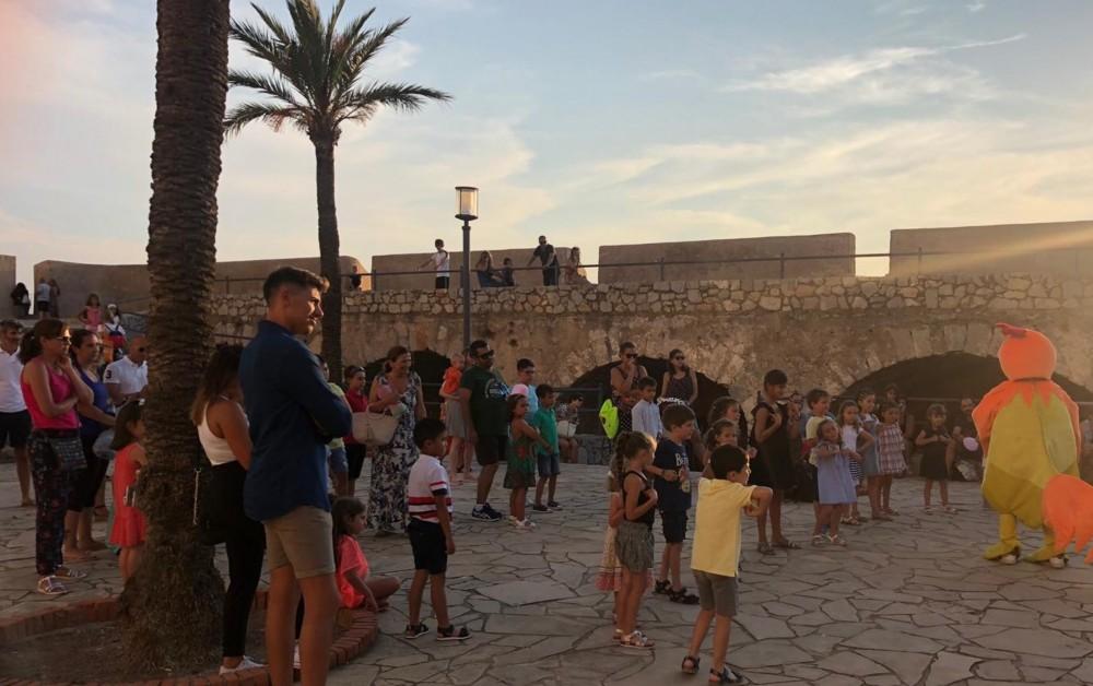 En la zona d’accés als Jardins del Castell, en la Bateria del Calvari, es duen a terme els sis espectacles programats, que han començat aquest dimecres i que estan orientats al públic infantil.