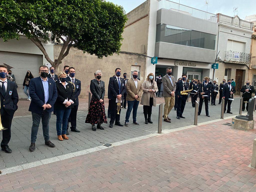 La formació musical ha interpretat diferents peces musicals a la Plaça Espanya, mentre que el lliurament a la presidenta de la Federació de Societats Musicals d'una xicoteta escultura que representa a l'Hermes trobat en la vila romana del municipi ha simbolitzat la felicitació al treball desenvolupat per aquesta entitat per a aconseguir aquesta declaració nacional que reconeix la labor educativa, social i cultural lligada a aquest col·lectiu.
