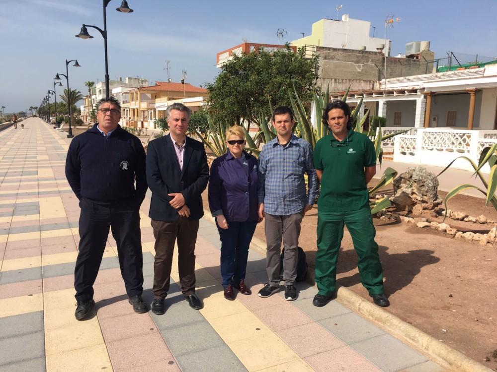 El alcalde de Xilxes, José Martínez, Patro Valls, concejala de Bienestar Social, Manu Payás, de la empresa Editerra, así como el jefe de la brigada municipal se han reunido con Eduardo Signes, de Cocemfe, para comprobar sobre el terreno el recorrido de la ruta y establecer las ubicaciones de las distintas plantas aromáticas.