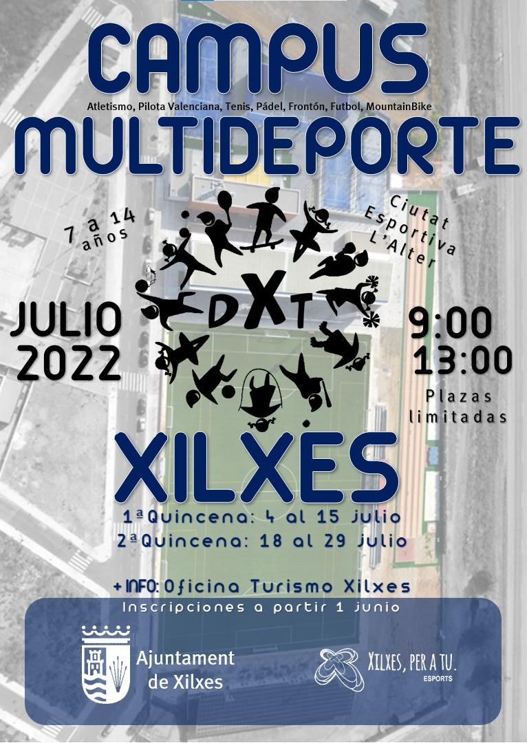 El Ayuntamiento de Xilxes ofrecerá durante el mes de julio un Campus Multideporte dirigido a niños y niñas de entre 7 y 14 años, propuesta que combina diversión y práctica deportiva con la que el consistorio pretende contribuir a fomentar un estilo de vida saludable, además de ayudar a la conciliación de la vida laboral y familiar durante este periodo vacacional.