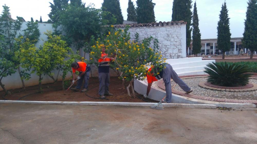 A lo largo de esta semana los operarios de la Brigada Municipal están llevando a cabo distintas actuaciones de mejora en el cementerio, que comprenden la poda de árboles, el saneamiento de la vegetación de las jardineras, la pintura de los bordillos y la limpieza general de las instalaciones.