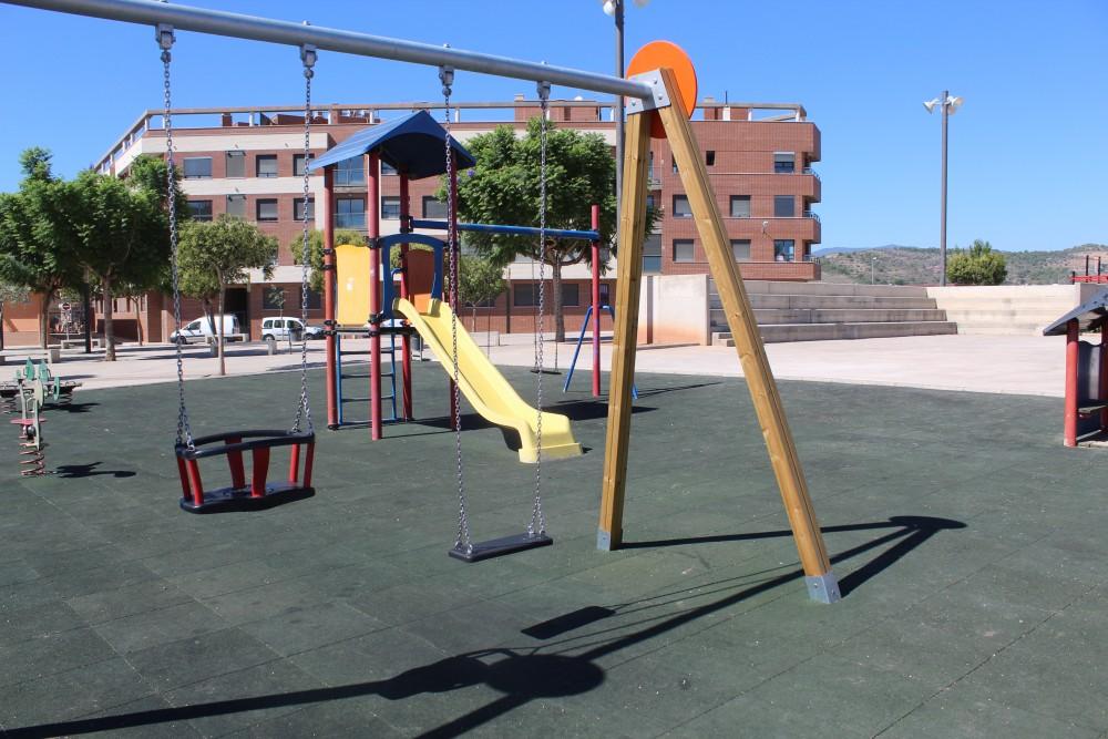 La actuación también ha agrupado la zona infantil, de modo que ahora los más pequeños disponen de nuevos elementos de juego y de un espacio más amplio con el suelo de caucho.