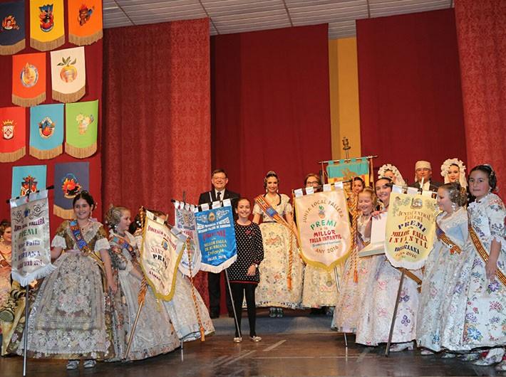 entrega premios fallas 2016Tras este acto de entrega de premios, la Reina Fallera, Laura Conde, la Reina Fallera Infantil, Marina Monferrer, las Damas de la Ciudad y sus respectivas Cortes de Honor, acompañadas por las autoridades políticas han visitado los monumentos ganadores.