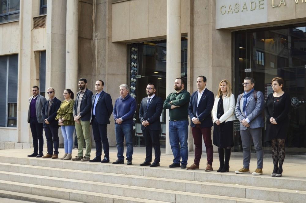 Representantes de la corporación municipal de Almassora así como miembros de la plantilla municipal, con la alcaldesa, Merche Galí, al frente se han sumado también con una concentración silenciosa a las puertas de la Casa de la Vila.