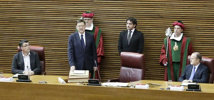 Alrededor de las 11.00 de la mañana prometía el cargo en un pleno extraordinario de Las Cortes Valencianas y gracias a la mayoría absoluta conseguida con al apoyo de su partido, PSPV-PSOE, con 23 diputados, los 19 de Compromís, y 8 de los 13 parlamentarios de que dispone Podemos.