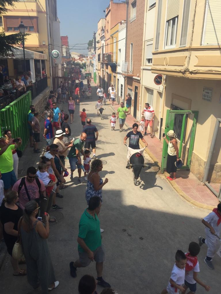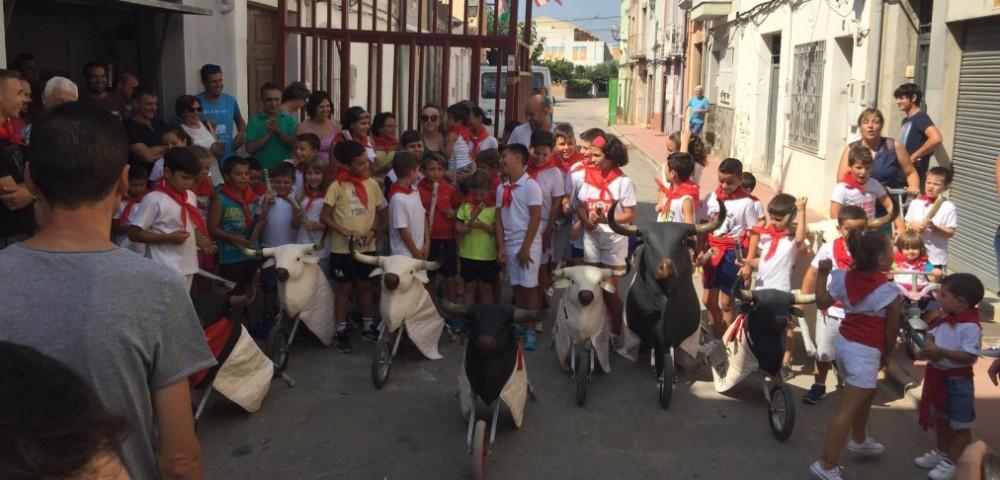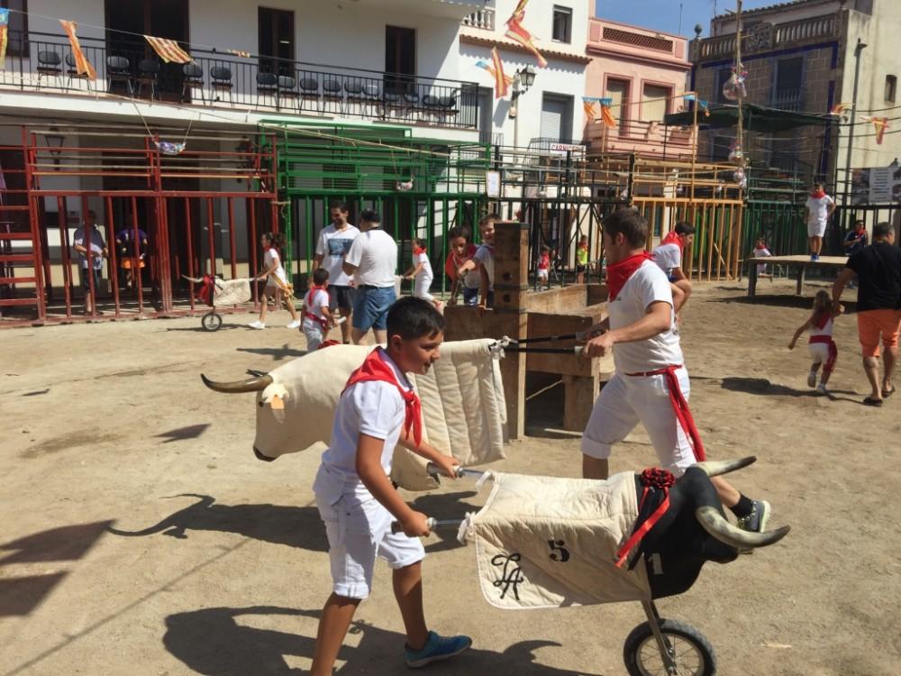 D'altra banda, aquest matí, s'ha realitzat una entrada de bous a l'estil Sant Fermín, que ha comptat amb una gran participació per part dels xiquets de Sta. Magdalena, que vestits tots de blanc i amb el seu mocador roig, han torejat als caps de bestiar alternatius. En la plaça de bous s'han llançat caramels i els xiquets han demostrat, que ja de ben xicotets prometen com a toreros. Aquesta vesprada, de nou hi ha exhibició taurina i aquesta nit bou embolat, a les 22.30 hores. Les Festes Patronals de Santa Magdalena finalitzaran demà a les 23 hores amb el Castell de focs artificials per part de Pirotécnia Tomás de Benicarló.