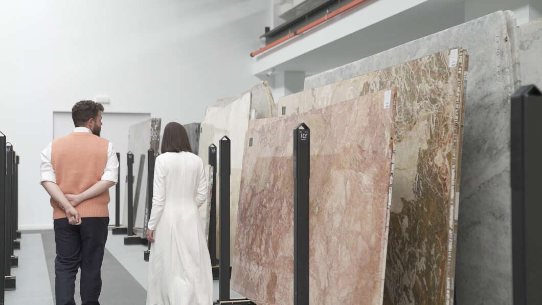 Piezas de gran formato con la última tecnología en porcelánico y la exclusividad de la piedra natural, con diseños asombrosos que formarán parte de algunos de los espacios más característicos y conceptuales de la edición.