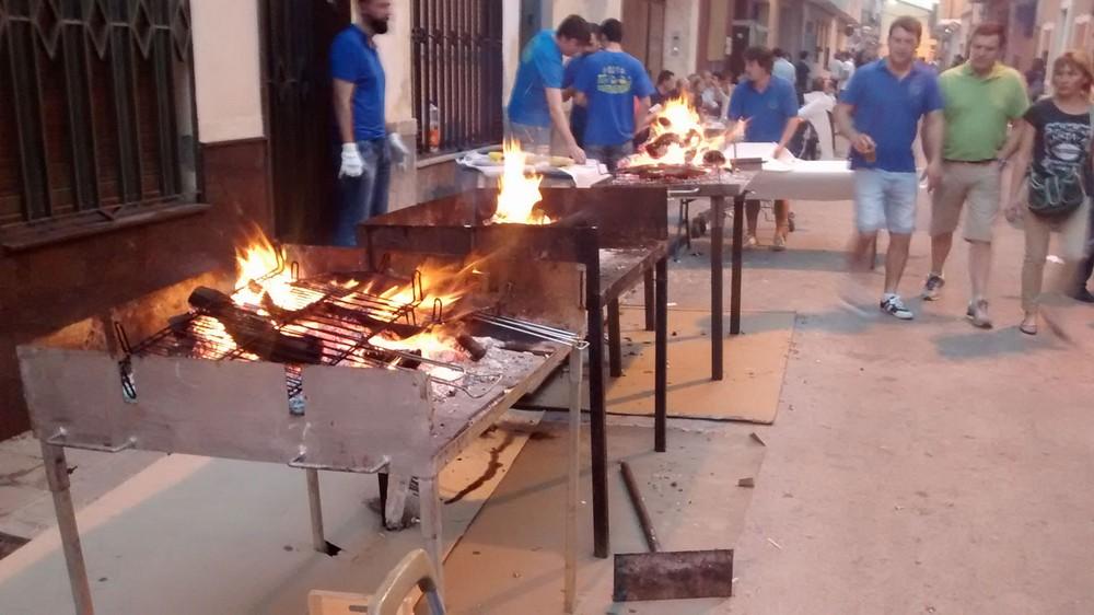El menú, aunque puede ser variado en cuanto a los entrantes, básicamente está compuesto por carne y embutidos a la brasa que junto a buenas hogazas de pan y el tradicional all i oli llenan las mesas y prácticamente todas las calles de la ciudad de hogueras, momentos de risas y amistad en una de las noches más participativas de las fiestas.