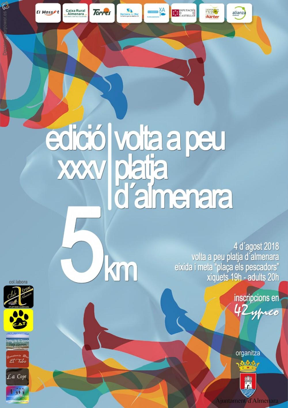 Dissabte que ve, 4 d'agost, se celebrarà la XXXV edició de la Volta a Peu de la Platja d'Almenara, una de les proves més antigues en el panorama de les carreres. La modalitat com en els anys anteriors serà la de 5 quilòmetres amb un recorregut per un circuit urbà pel nucli marítim d'Almenara amb eixida i meta en la Plaça dels Pescadors. Destacar que la