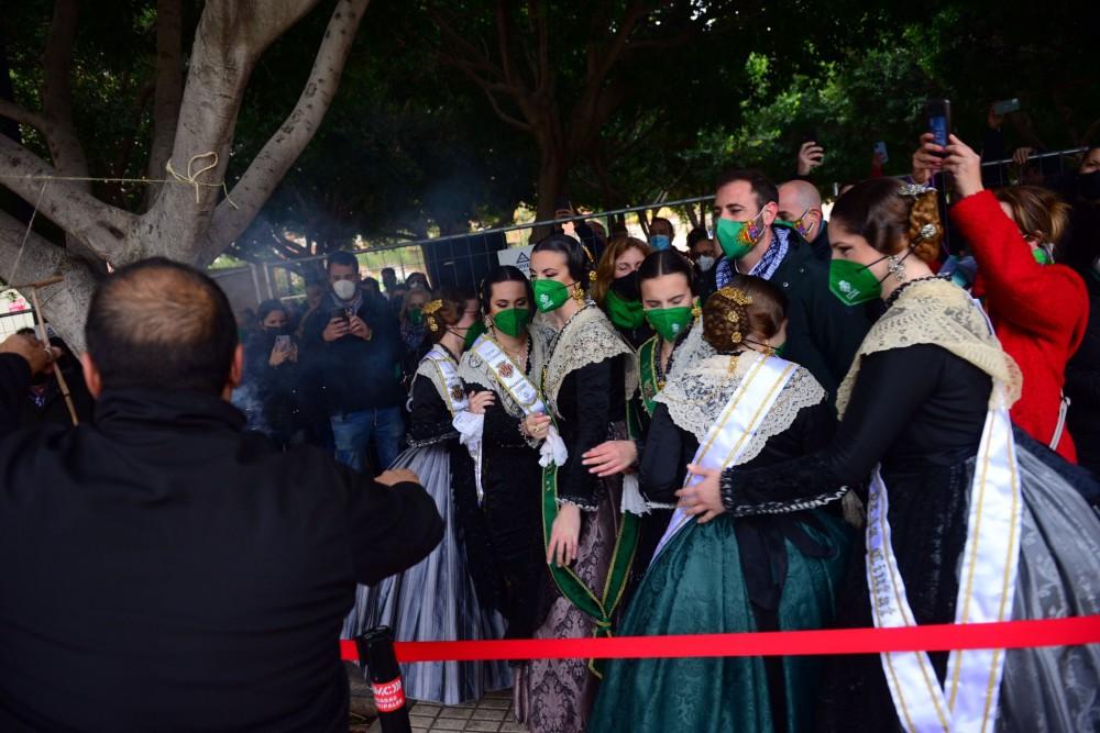 Mucho ambiente en el recinto de mascletàs, donde además de las reinas y sus cortes, se daban cita los pregoneros, alas autoridades de Castelló y también la Na Violant y Dones de Companya de la Germandat.